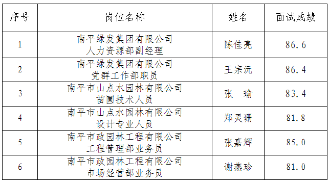 根據(jù)《南平綠發(fā)集團(tuán)有限公司招聘公告》,我集團(tuán)公司面向社會公開招聘工作已經(jīng)結(jié)束?,F(xiàn)將擬錄用人員名單予以公示。